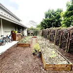 Die Unterkunft hat einen Blick auf den Garten.